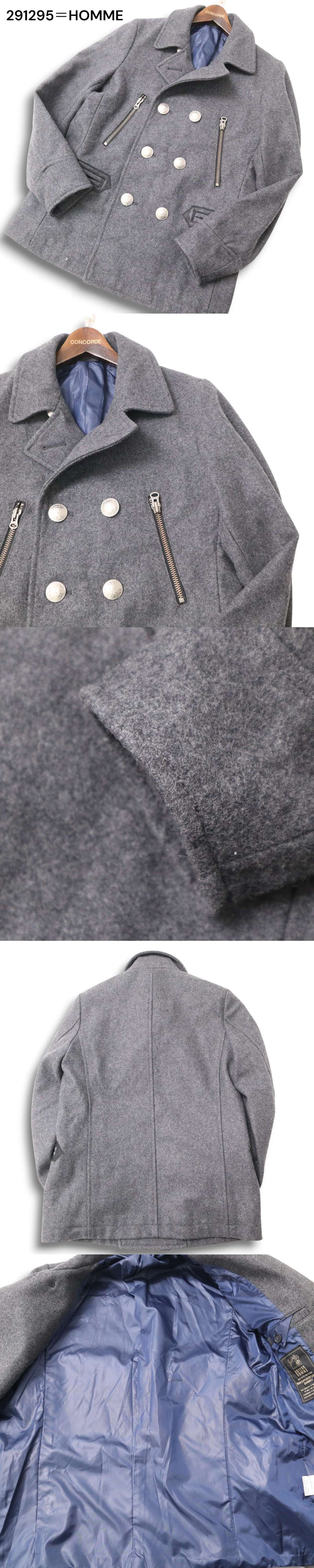 291295=HOMME ニーキューイチニーキューゴーオム 秋冬★ 銀ボタン ウール ピーコート Pコート Sz.48 メンズ グレー 收藏