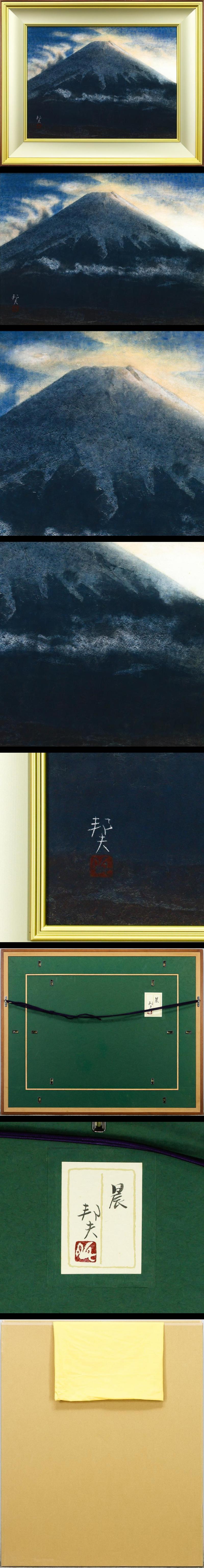 【真作】【WISH】竹内邦夫「晨」日本画 12号 大作 共シール ◆静かに威厳を放つ、夜明けの富士 〇日本美術院特待 外務省買上 #25122760 收藏
