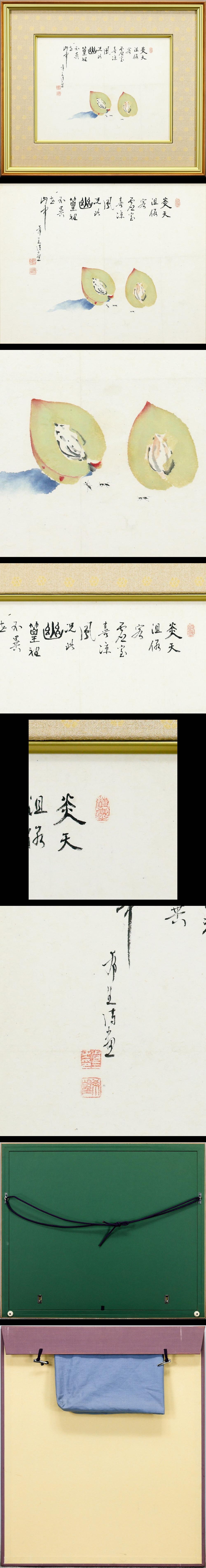【真作】【WISH】児玉希望 日本画 6号 ◆書と桃が響き合う一景 〇日本芸術院会員 日展常務理事 師:川合玉堂 #25122607 收藏