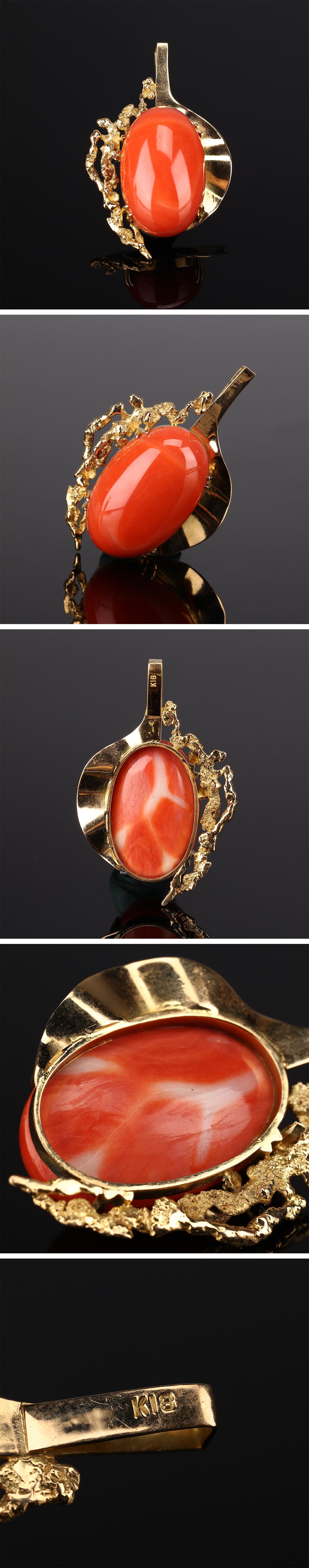 【吉】GB740 【K18金】 本珊・瑚 巨大 ペンダントトップ 玉幅28.3×18㎜ 本体幅48.4×32㎜ 重17g/本物保証ZN! 收藏