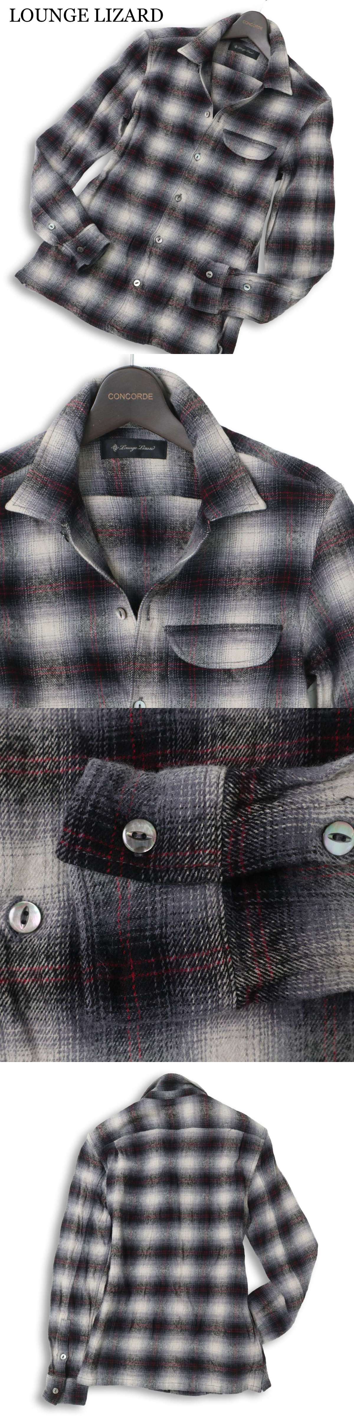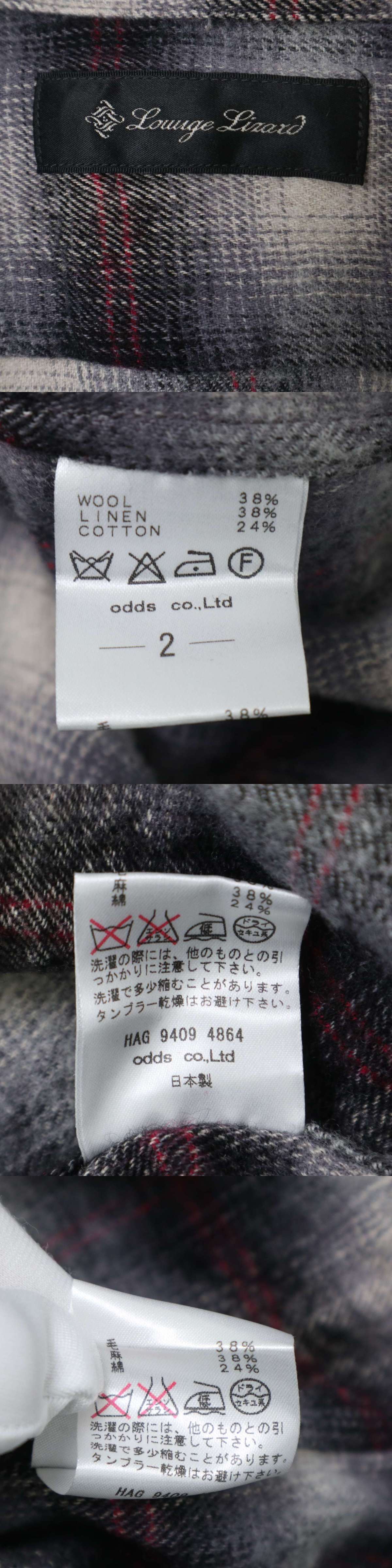 LOUNGE LIZARD ラウンジリザード 秋冬 ウール リネン混★ 長袖 オンブレーチェック ワーク ネル シャツ Sz.2 メンズ 日本製 收藏