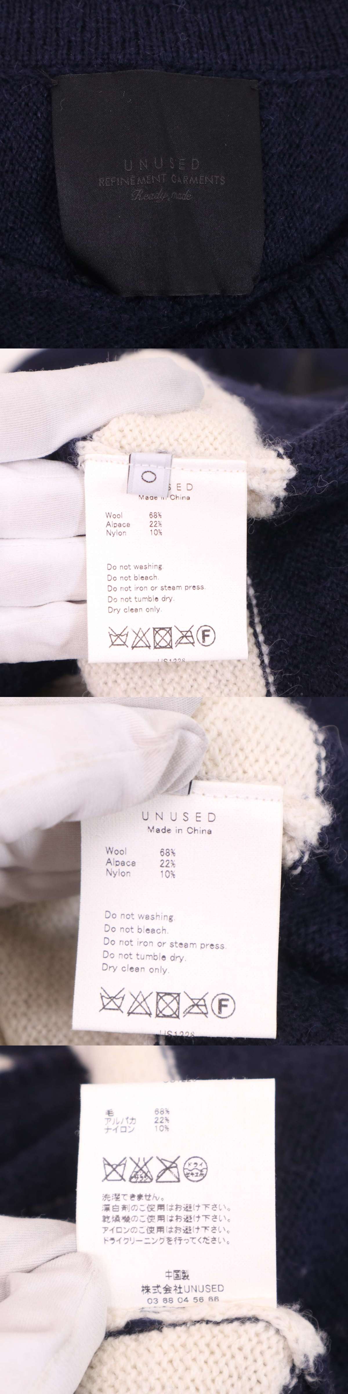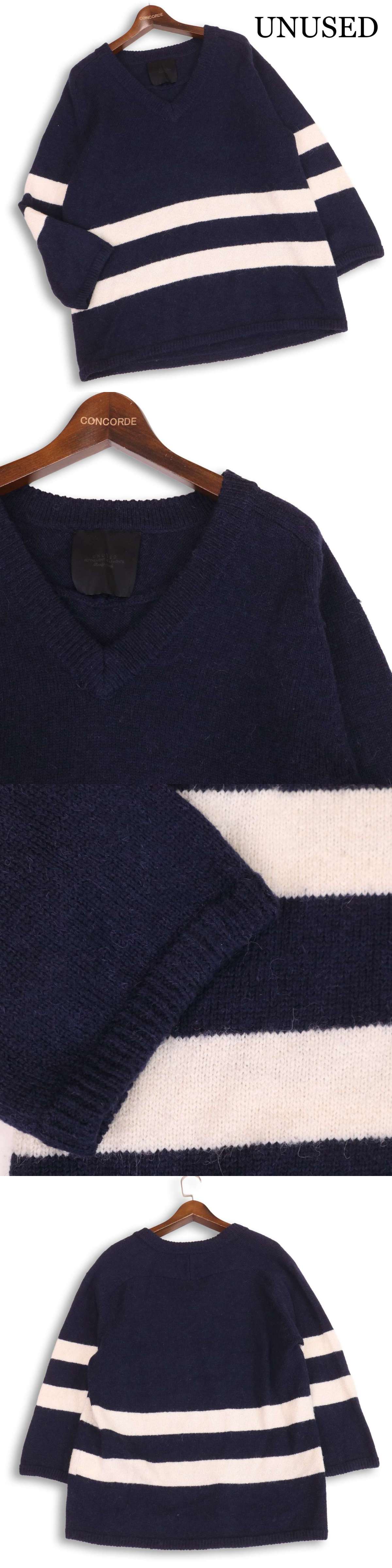 UNUSED アンユーズド 秋冬 アルパカ混 ウール♪ ボーダー Vネック ニット セーター Sz.0 レディース 紺 ネイビー 收藏