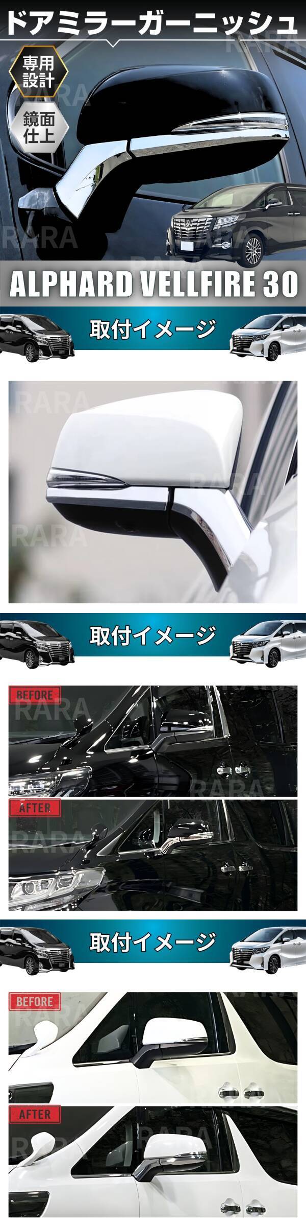 アルファード 30 後期 前期 ヴェルファイア サイドドアミラー ガーニッシュ メッキ 4枚 30系 サイドミラーガーニッシュ ALPHARD VELLFIRE
