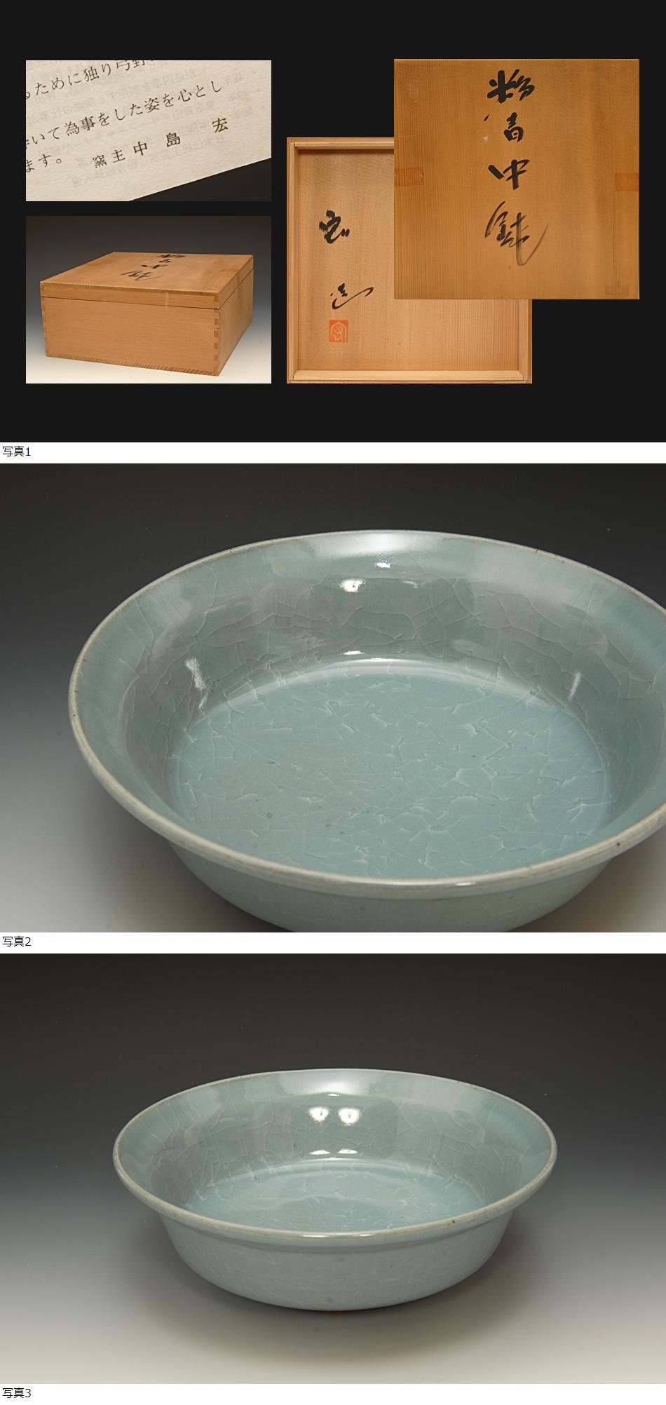 星庵厳選名品企画 人間国宝 中島宏 粉青中鉢 共箱 收藏
