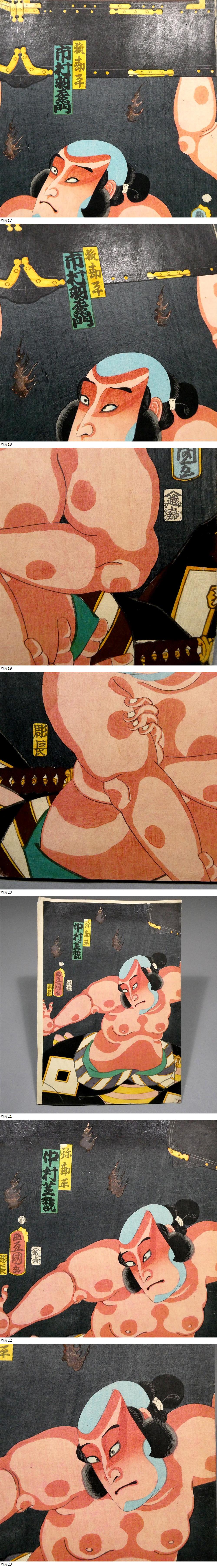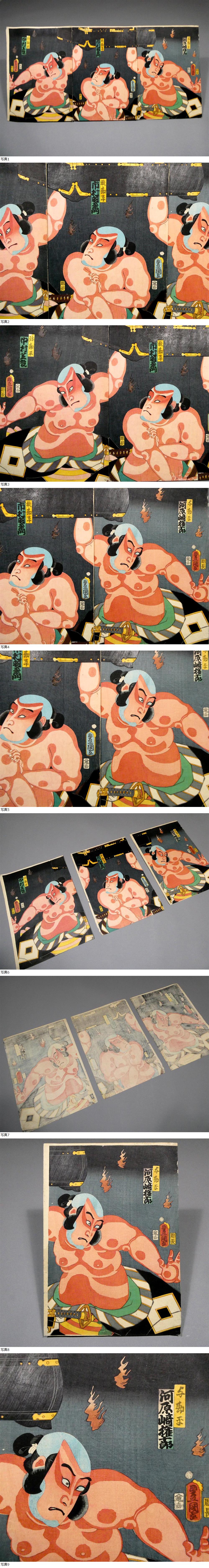 歌川国貞◆3枚続揃い 役者絵◆江戸時代 木版浮世絵◆「与勘平 河原崎権十郎」「狐勘平 市村羽左衛門」「弥勘平 中村芝翫」■豊国三代 36 收藏