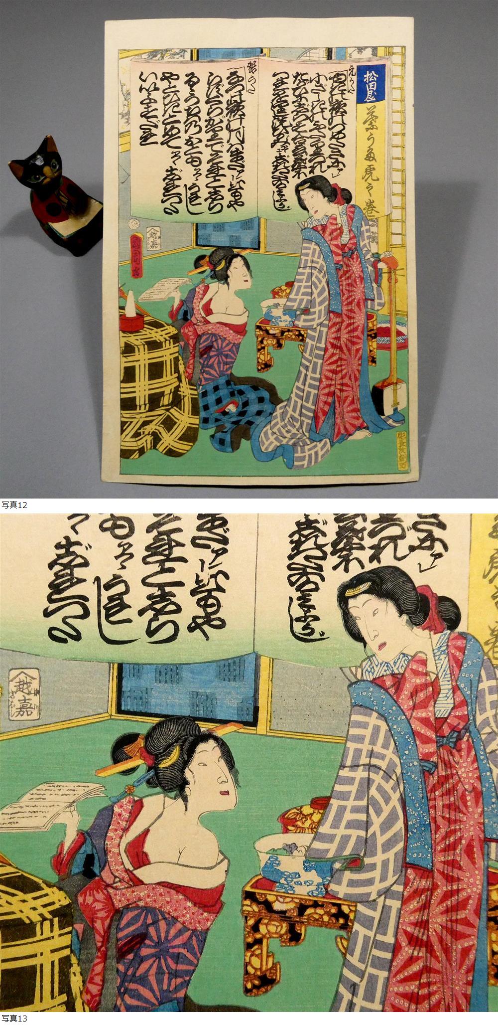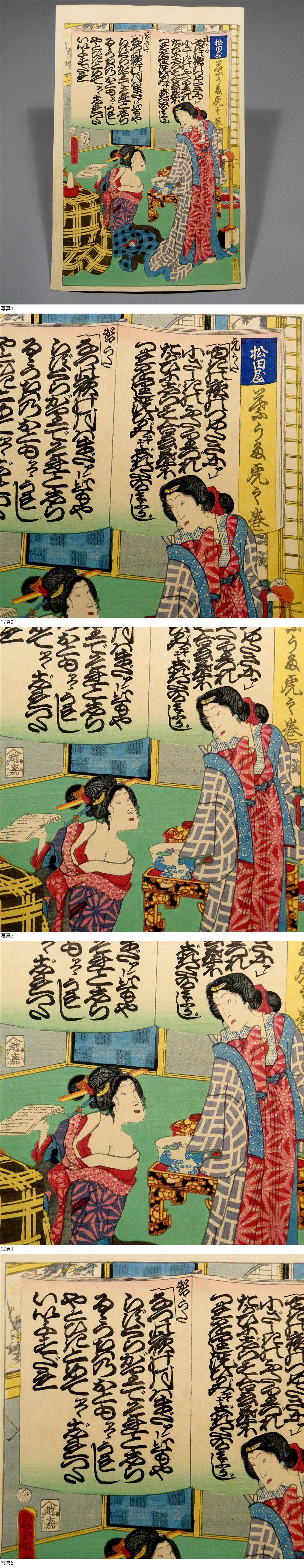 豊原国周◆コタツで熱燗の図◆江戸時代 木板浮世絵「葉うた虎之巻 松田屋」◆それと知らるる団扇の音も嬉しやと…■遊女 豊国 芳年 清親 8 收藏