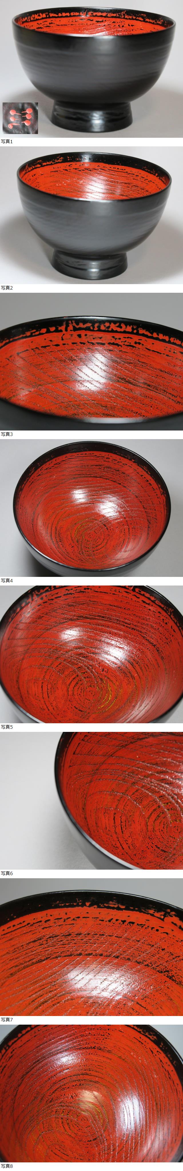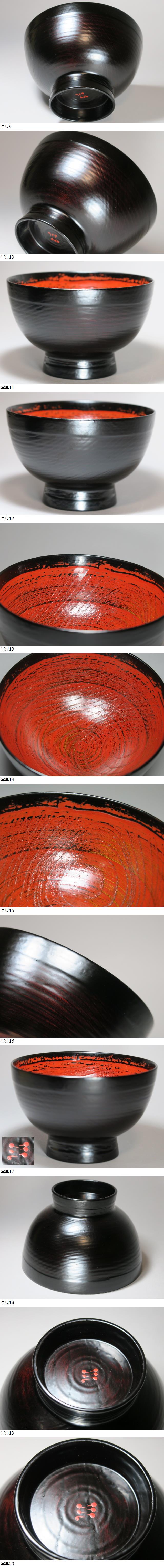 ◆輪島塗 巨匠 角偉三郎 合鹿椀 内根来 汁椀 六つ星 和紙共箱 子息:角有伊自筆鑑定書付 晩年希少作 布着本堅地 美品 本作保証 收藏