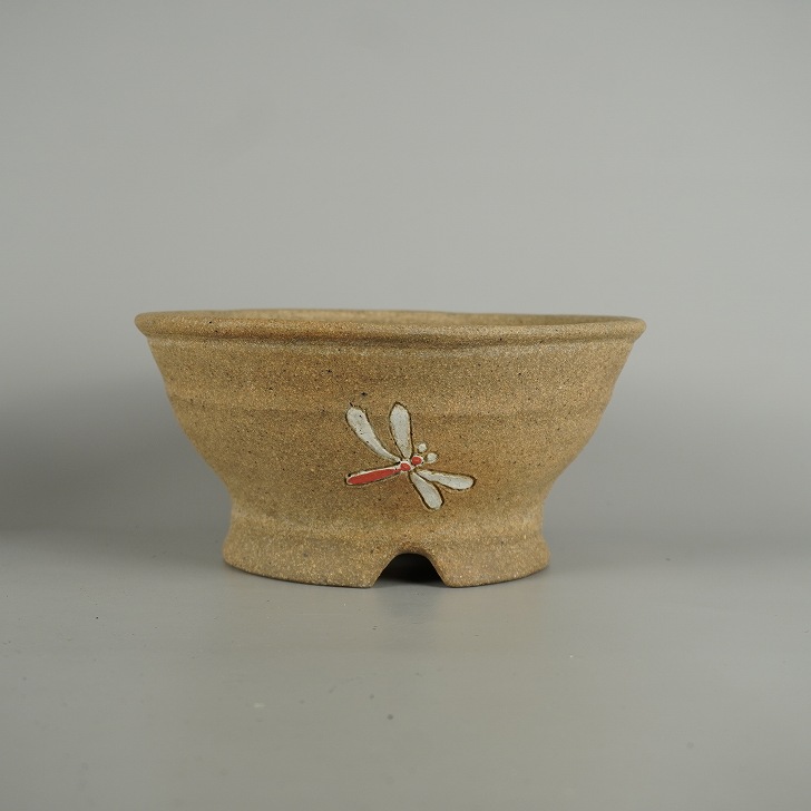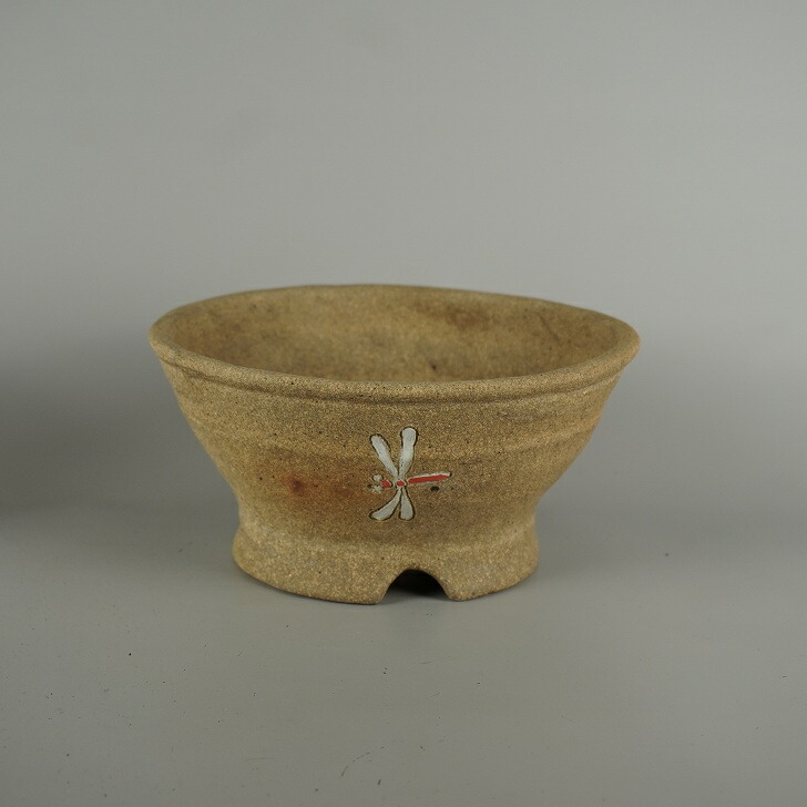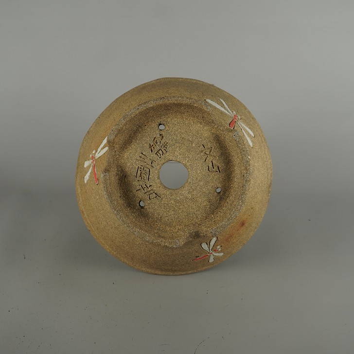 盆栽鉢 文山 越前文山 小型 長辺 約 19.3cm 鯖江園芸 丸鉢 色絵 蜻蛉 とんぼ トンボ 泥物 現品 新品 收藏