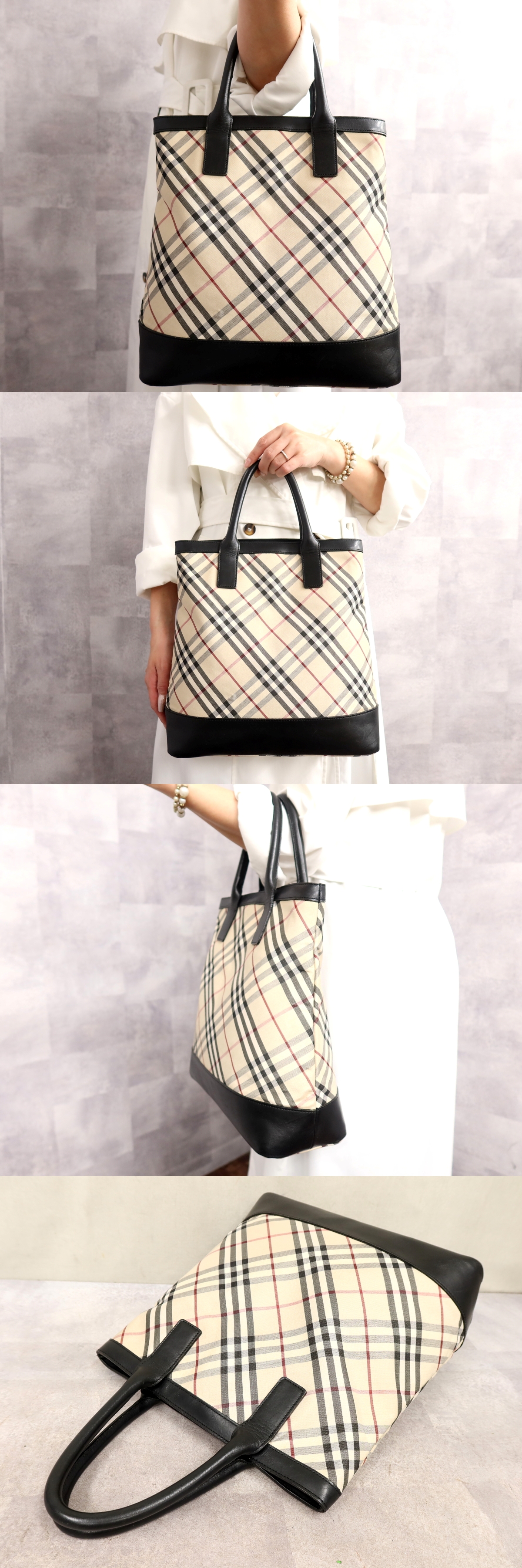 ●超美品●BURBERRY バーバリー●ブルーレーベル●ノバチェック●キャンバス カーフ レザー 本革●トート バッグ●ベージュ●B5●Js67180 收藏