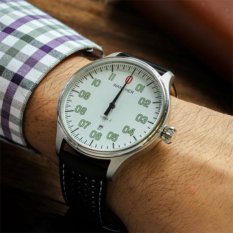 ■●WANCHER「Cifra Z」シフラゼット 機械式自動巻き ワンハンドウォッチ 零戦コクピット 1針時計 パイロット ホワイト 白 未使用 /1006WH 收藏