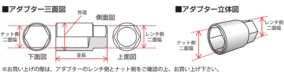 | 品番 | ナット側/レンチ側mm | 全長mm | 外径mm | JANコード 4965581~ |