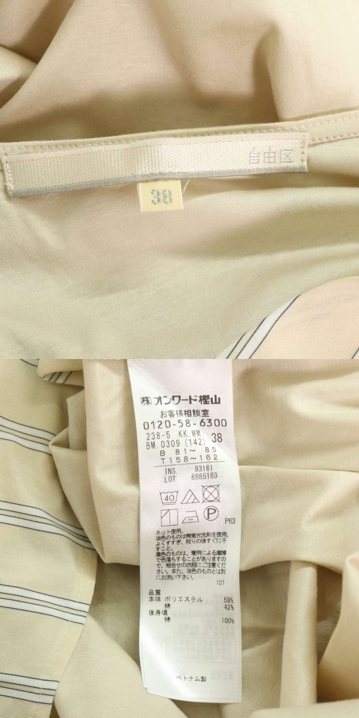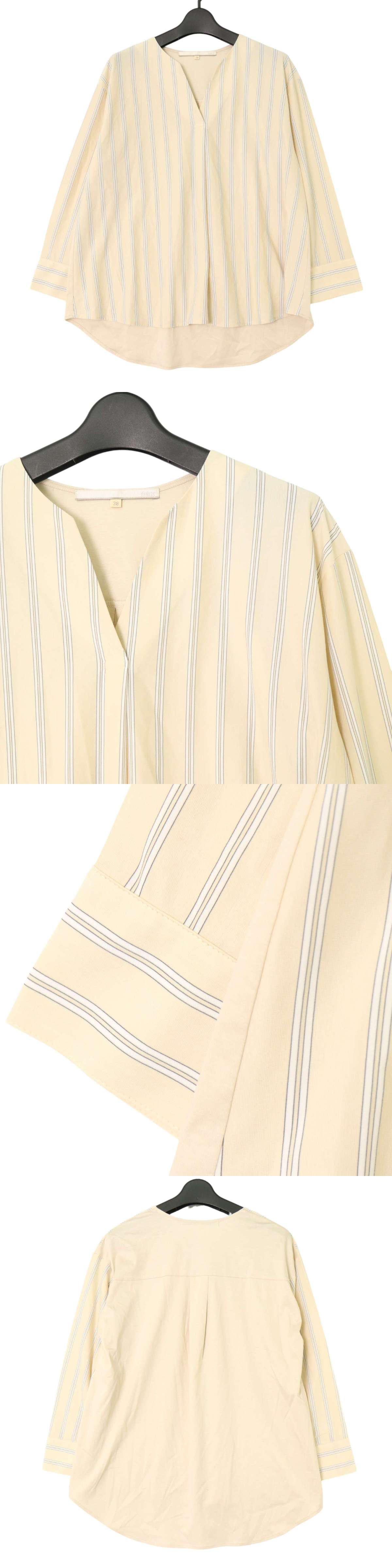 | 【美品】自由区 ジユウク 春夏★ ストライプ 長袖 ブラウス シャツ Sz.38 レディース E5G02376_4#S | |||