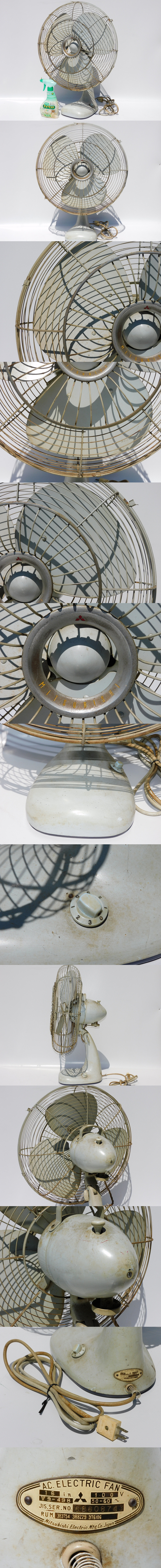 【b8682/超頭でっかち!/送料無料/12】MITSUBISHI レトロ扇風機 16inch 3枚羽 鉄足 鉄羽 レア 希少 重たい アンティーク 昭和 中古 家財便 收藏