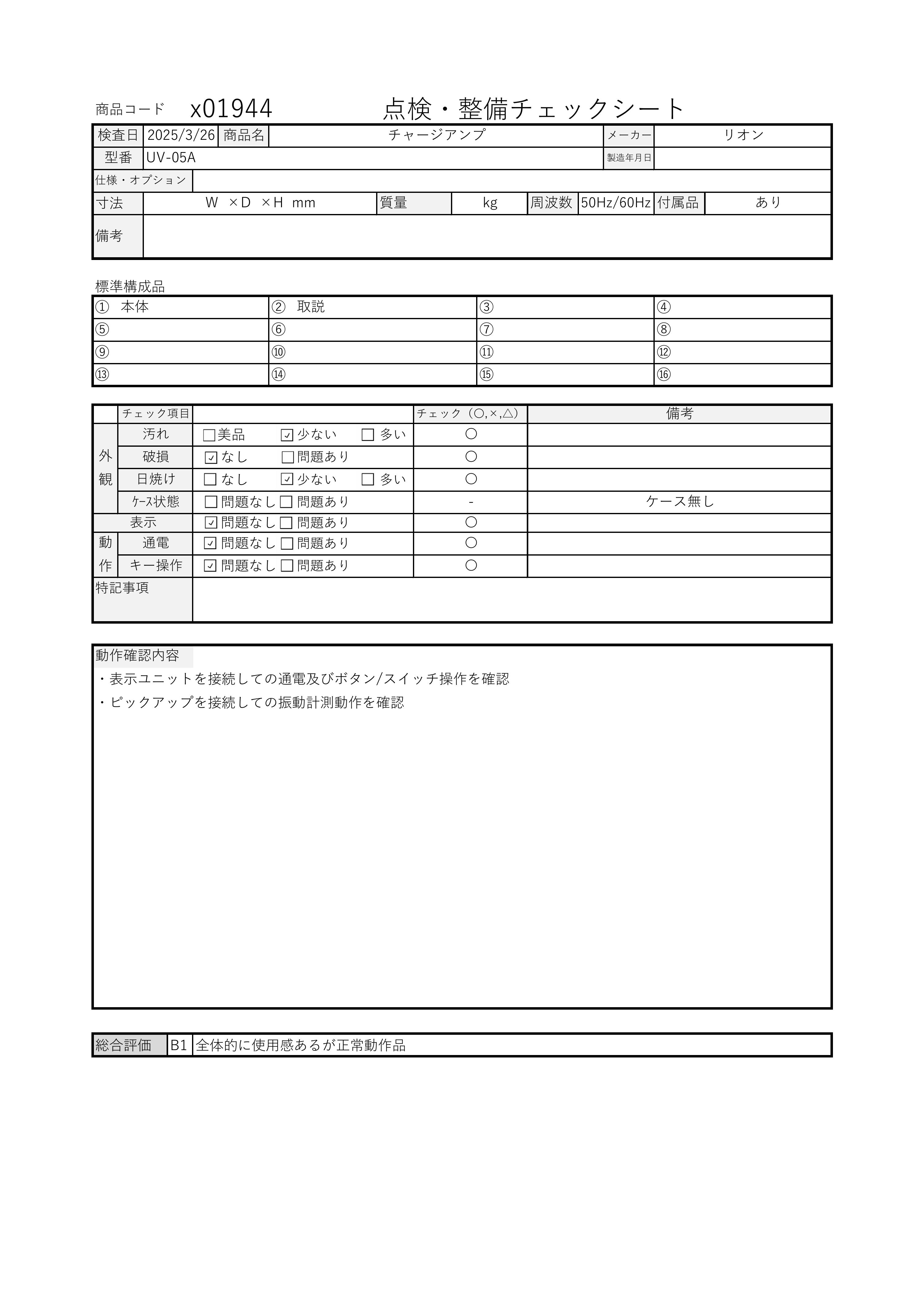 【中古】チャージアンプユニット(1ch) UV05A UV-05A リオン RION x01944 ★送料無料★[騒音測定器/振動測定器/粉塵測定器] 收藏
