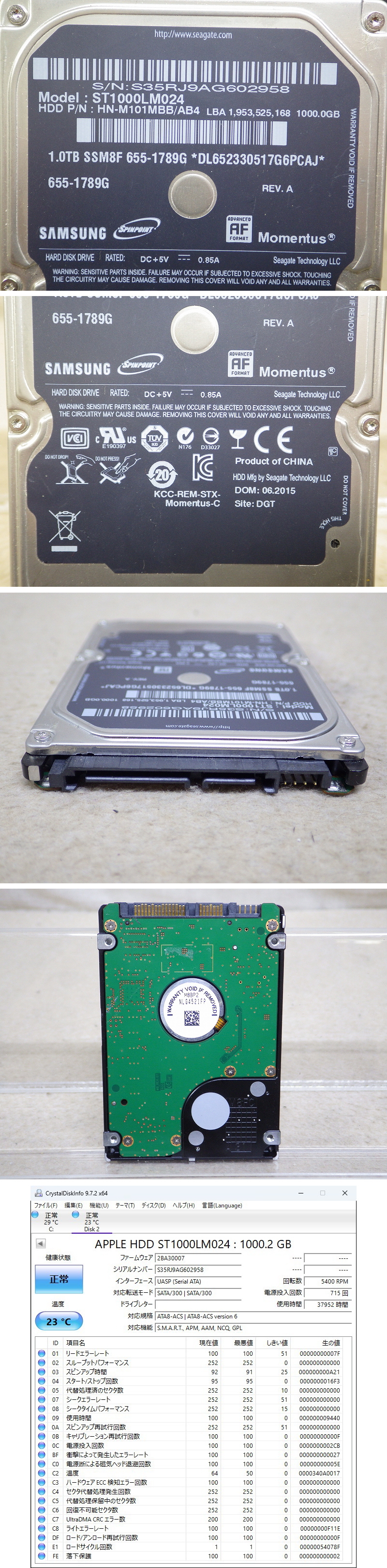 Kヲま2390 SEAGATE 2.5インチ SATA 内蔵HDD 1TB APPLE HDD ST1000LM024 パソコン周辺機器 PCパーツ ハードディスク 收藏