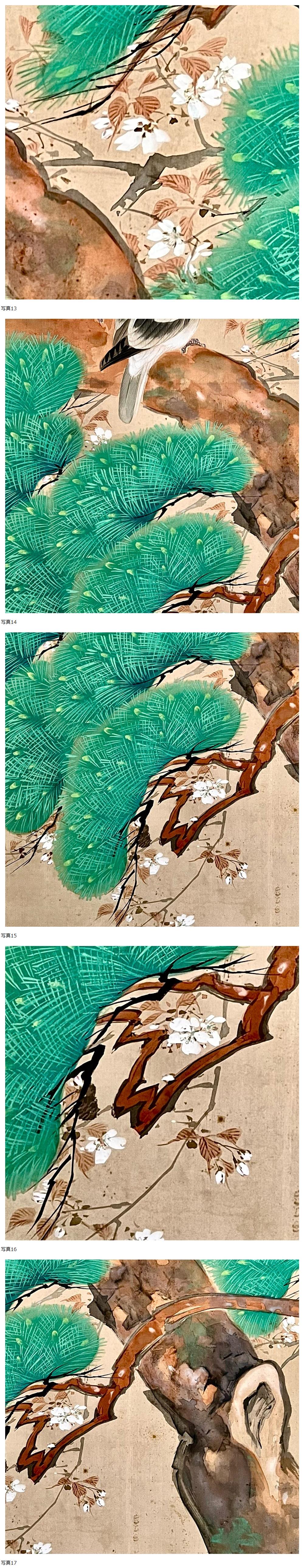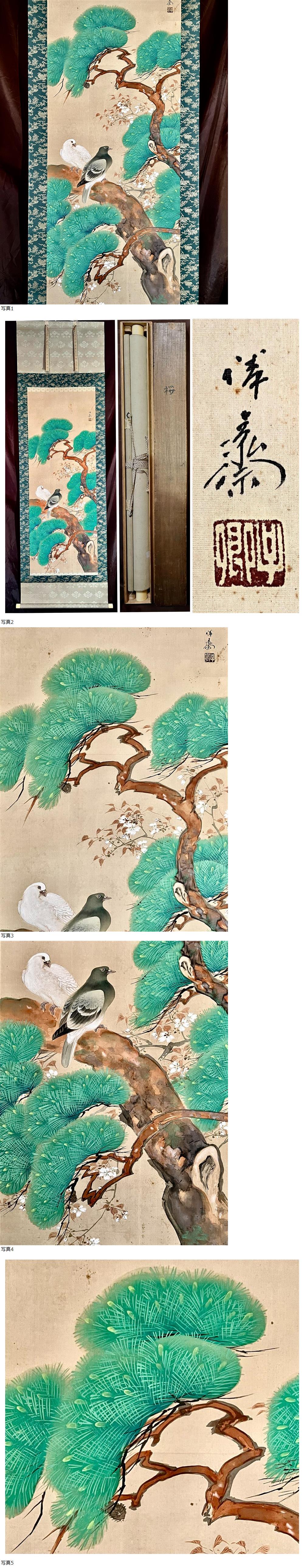 【真作】【仙】徳田隣斎「松桜花双鳩図」絹本 肉筆 合箱 大幅 花鳥図 鳥獣 絵画 掛軸 明治-昭和の日本画家 京都の人 師: 前川文嶺 竹内栖鳳