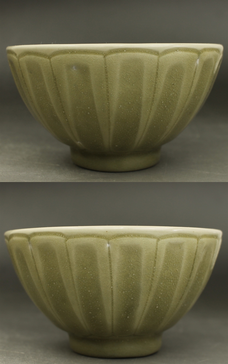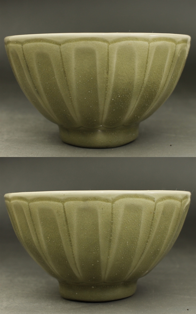 D656C 青磁 刻花 蓮弁紋 鉢 碗 径13.2㎝ 高さ7.8㎝ 中国古陶器模写複製品 龍泉窯? 茶碗 蔵出し 古玩 珍蔵 收藏