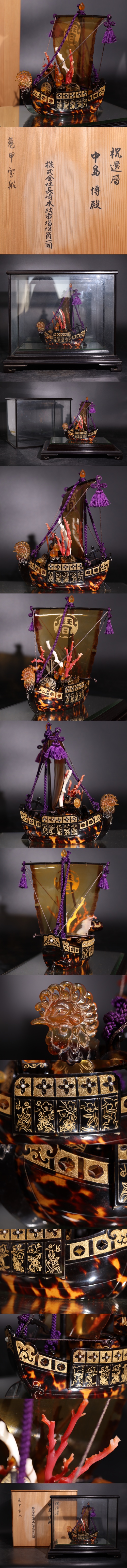 | 時代 鼈甲 宝船 ガラスケース 木箱付 / 検索: べっ甲 本鼈甲 珊瑚 長崎鼈甲 煎茶飾 .G3475 |