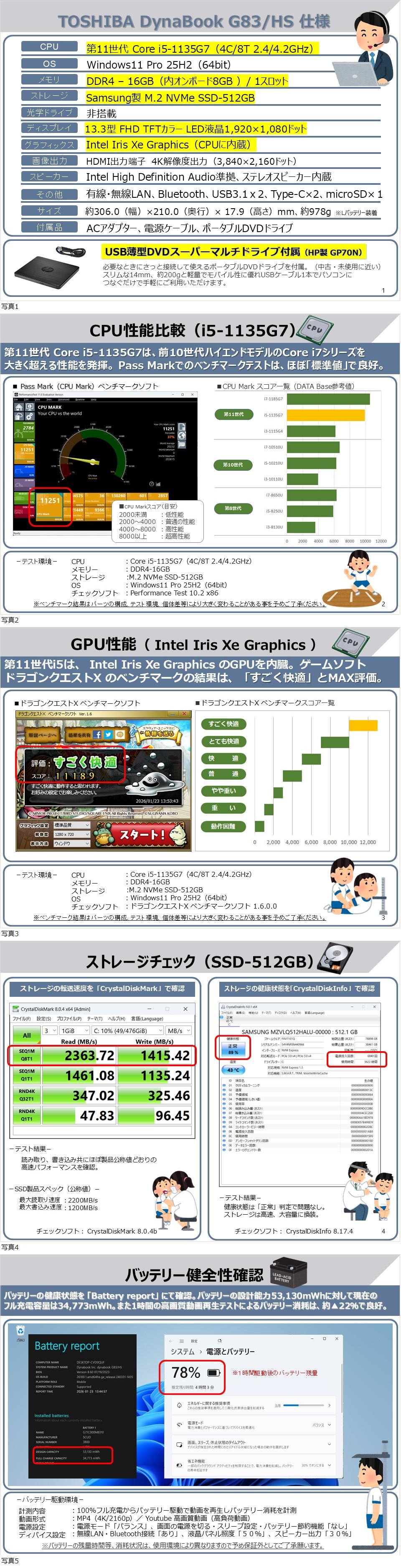 ■2021年 DynaBook G83/HS(第11世代 Core i5-1135G7/16GB/M.2 NVMe SSD-512GB/Office2024 LTSC/Win11Pro)ポータブルDVD付属 ⑧-7b 收藏