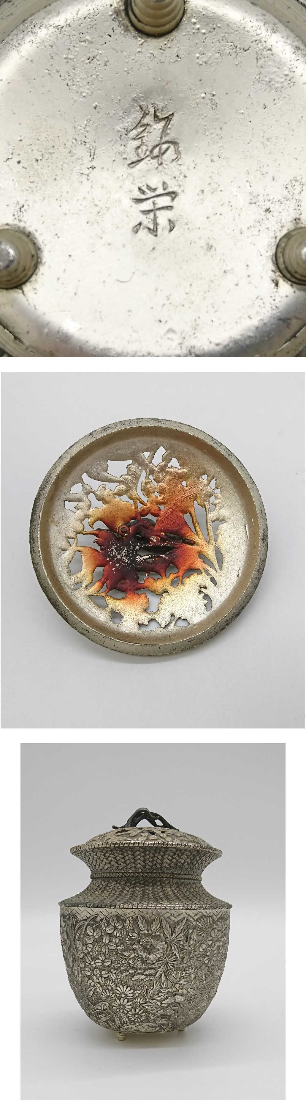 高岡銅器 鍛栄造 香炉 七草 三足 透かし彫り 茶道具 金属工芸 を出品致します。