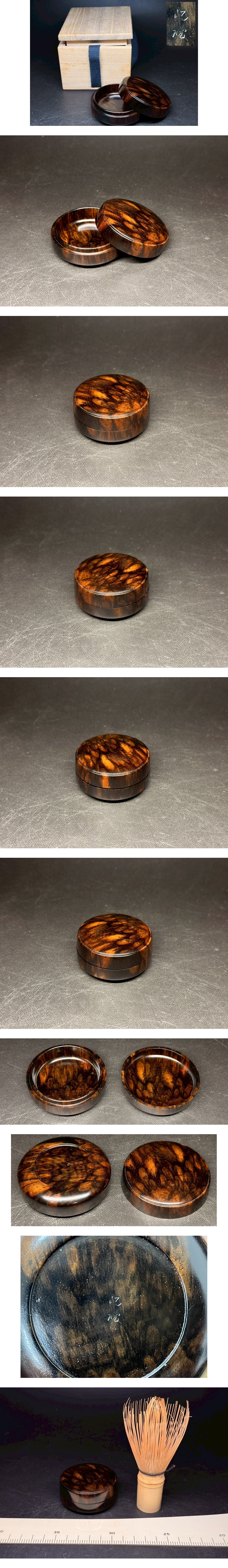 ●【極上品】黒柿 孔雀杢 平山悦雄 作 拭漆 香合 共箱 作家略歴付 茶道具 希少 銘木 工芸品 漆芸 伝統工芸 日本工芸会 骨董 時代物 ■サイズ:直径 6cm/高さ 2.3cm ※素人寸法の為、若干の誤差はご了承ください。 ■状態につきましては経年に伴うスレ・汚れ・小キズ などが見られます。 ※その他の細かな状態は写真にてご確認・ご了承の上 ご入札くださいませ。 ●こちらの商品などは時代物や古いお品・骨董品となり ますので、細かな状態を気にされる方・神経質な方の ご入札はご遠慮くださいませ。【EHN/Y】 |