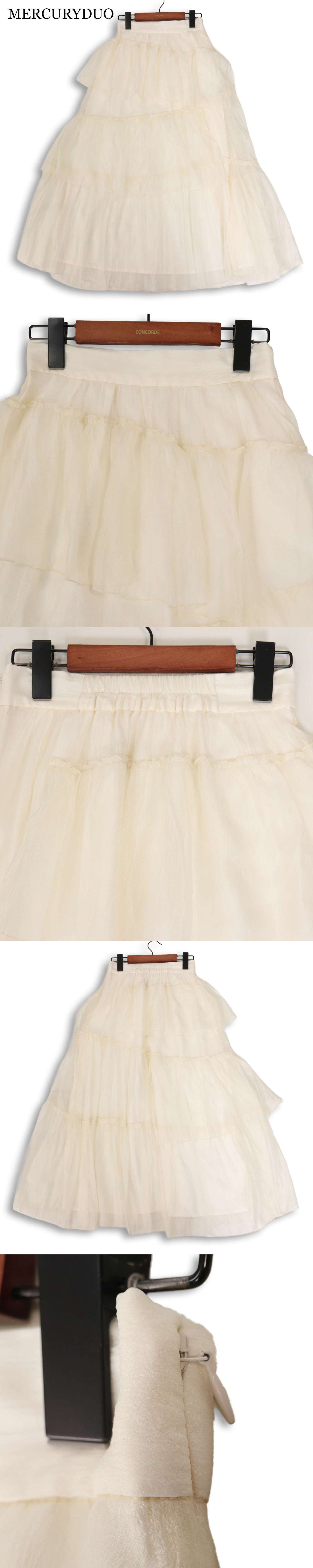 MERCURYDUO マーキュリーデュオ 通年★ チュール ティアード フレア ロング スカート Sz.M レディース 白 收藏