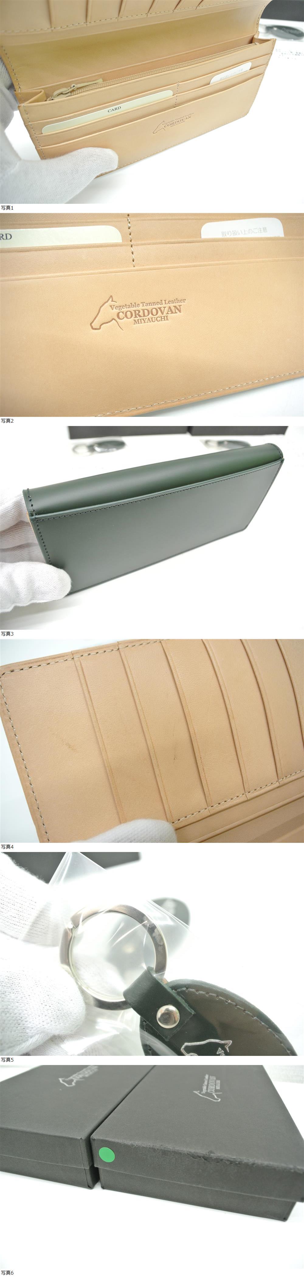 財布祭 2点セット コードバン 長財布 グリーン系 深緑 馬革 未使用 長期保管品 CORDOVAN MIYAUCHI ファスナーポケット有 背面ポケット有 收藏