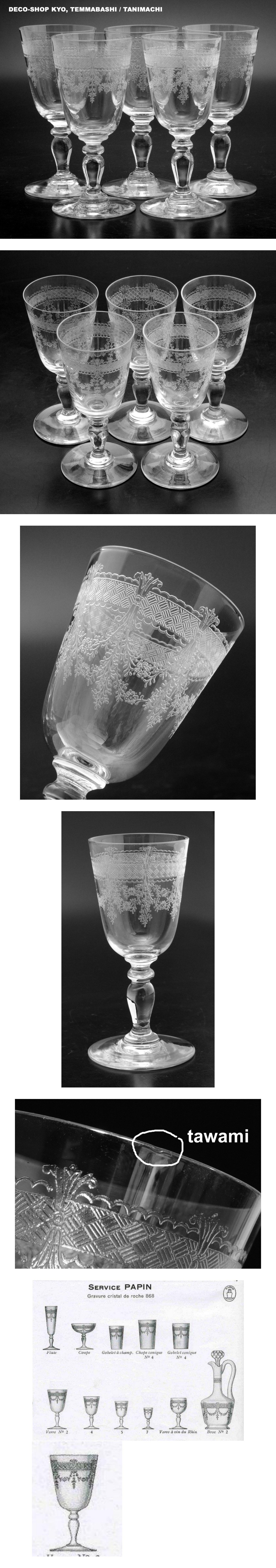 最高峰サンルイ, St. LOUIS!!アールヌーヴォー期,最高級細密グラビュール装飾, Papin・パパン!!ポートワイングラス・5点セット!!エルメス 收藏