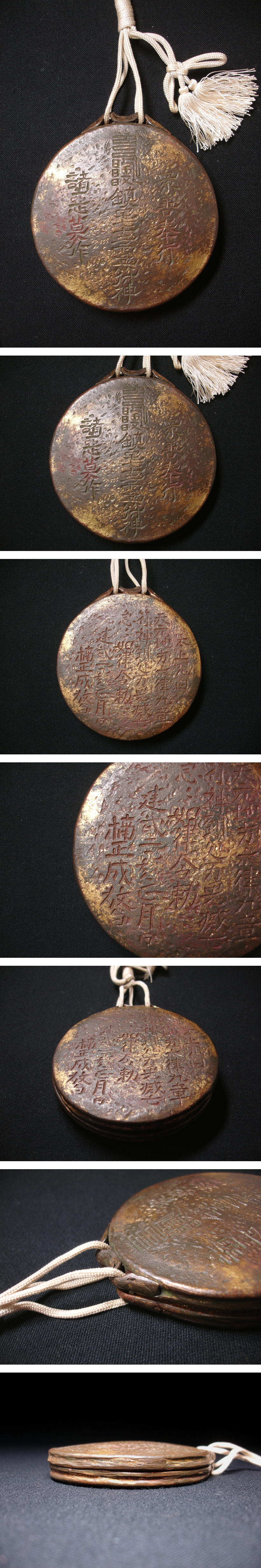 慶應◆時代仏教美術 一休宗純の銘文・楠木正成の漢詩彫 金銅鏡筥 鏡入 收藏