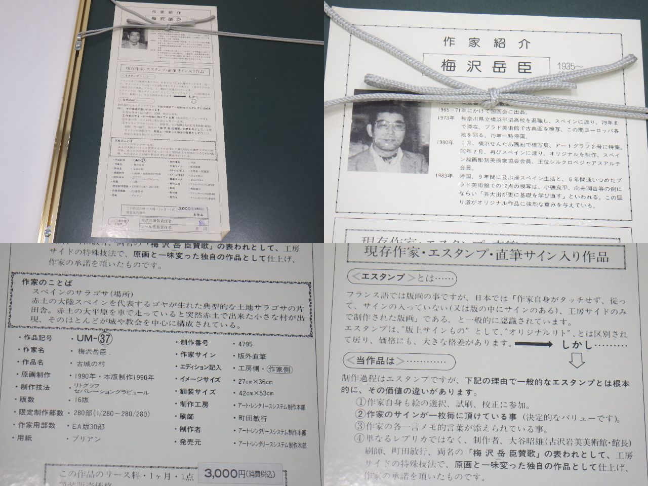 x5A019Z0.1 梅沢岳臣 無所属 「古城の村」 267/280 リトグラフ サイン有 版画 絵画 額装 收藏