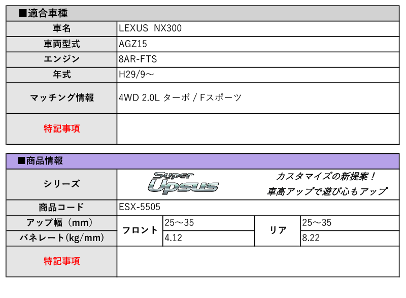 [エスペリア]AGZ15 レクサスNX300_Fスポーツ(H29/9~)用スーパーアップサス 收藏