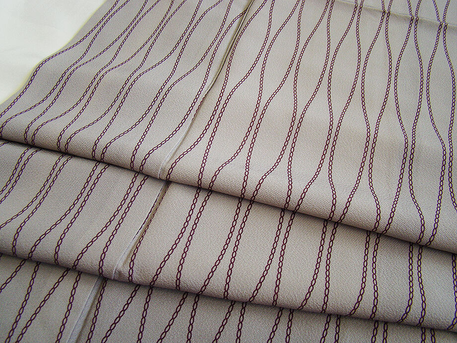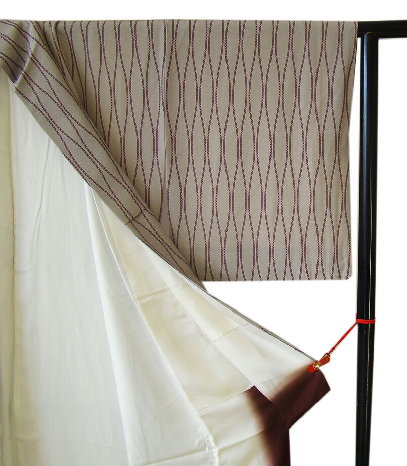 | 商品説明 | こちらのお品は「袷」ですので10月から5月までお召頂ければと思います。 とてもしなやかなさらりとした手触りの着心地良い重めの極上ちりめん地の生地、 薄い源氏鼠色地に蒲萄色の立涌柄の染柄、 八掛は黒鳶色(正絹)、幅広い年代の方にお召頂けます。 |