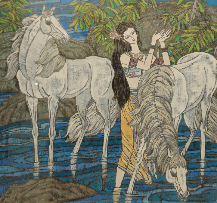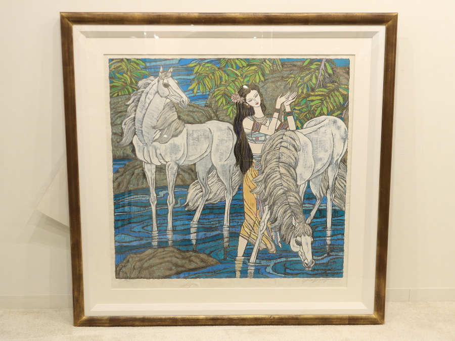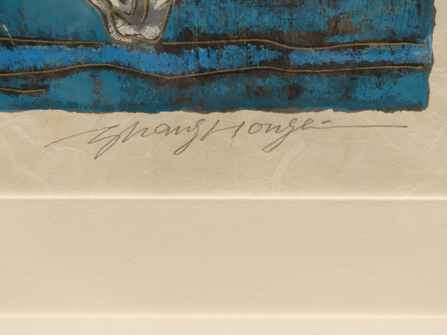11835■【真作】張宏賓 ザンホンビン 「ストリーム (DX)」 シルクスクリーン 直筆サイン 作品保証書 中国画家 北京出身 額装 收藏
