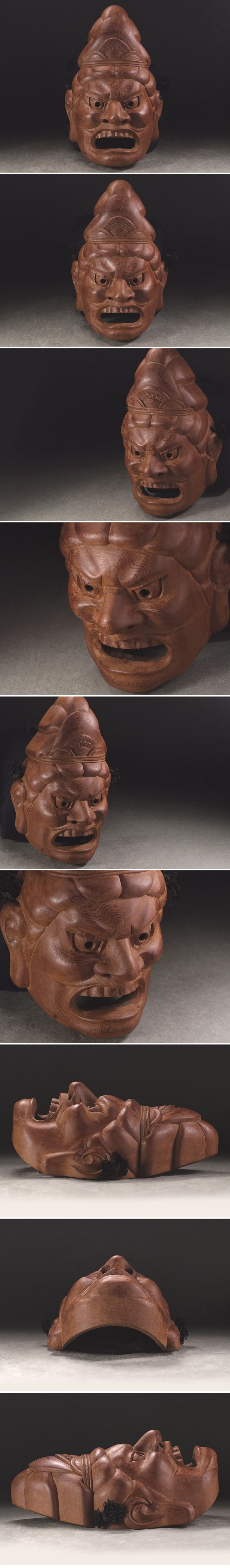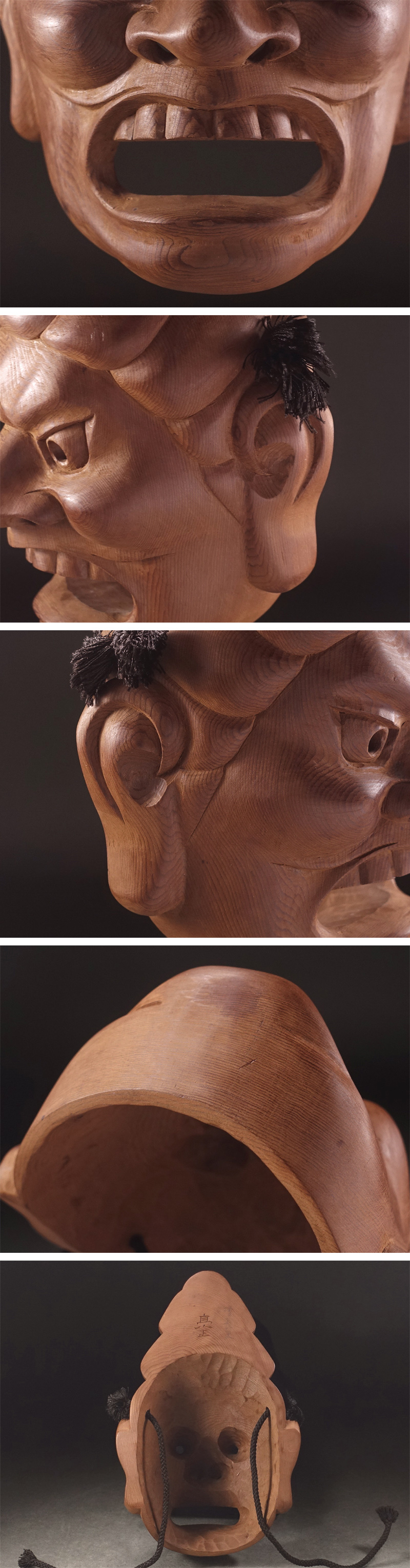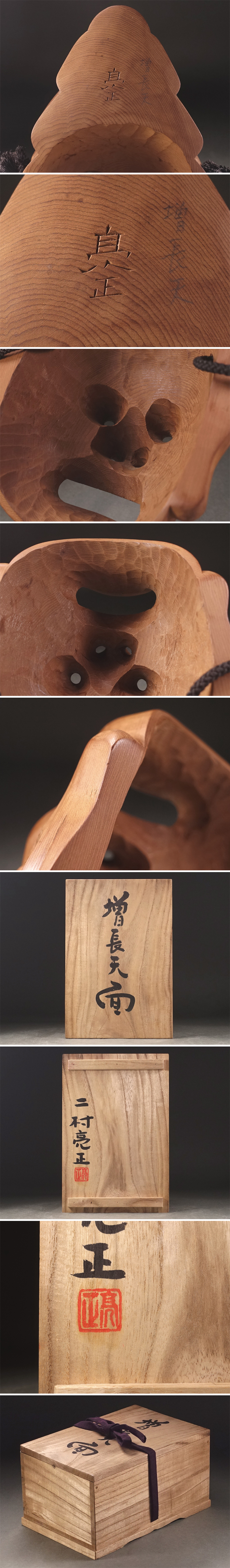 ∇花∇伝統工芸作家【二村亮正】作 飛騨一位一刀彫 木彫四天王面「増長天」 共箱付 收藏
