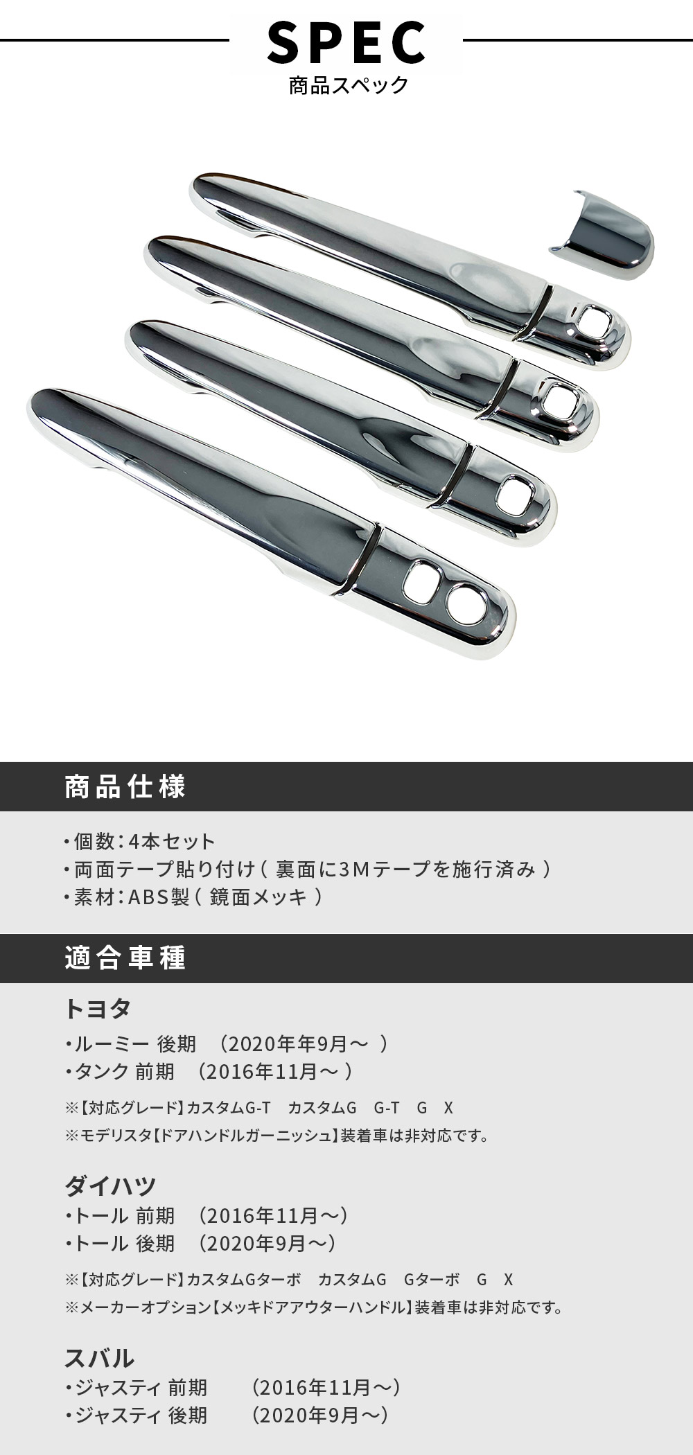 トヨタ ルーミー ROOMY タンク ドアハンドルカバー 4本セット メッキ仕上げ 鏡面メッキ 外装 カスタム パーツ ダイハツ トール スバル ジャ 收藏