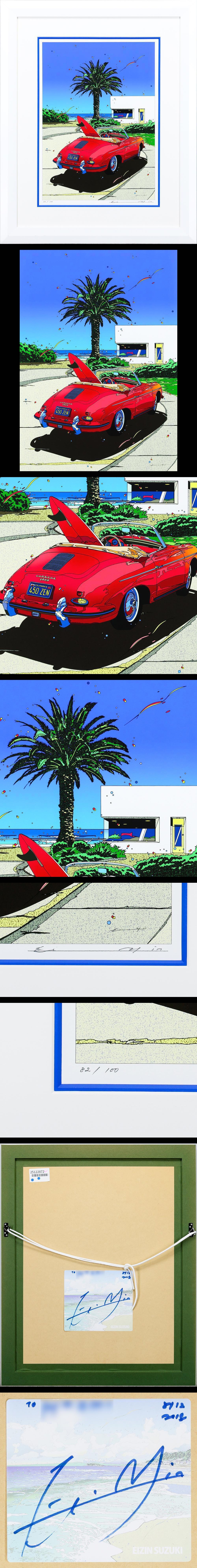 【真作】【WISH】鈴木英人「ローズレッド ロードスター」シルクスクリーン 8号大 直筆サイン ◆ポルシェ人気作 〇人気作家 #25122872 收藏