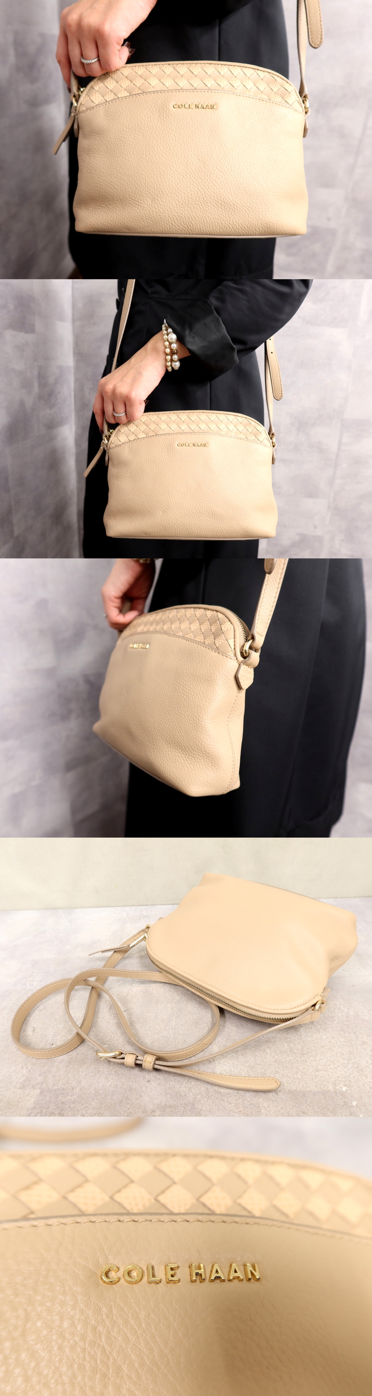 ●超美品●COLE HAAN コールハーン●イントレチャート●ロゴ金具●カーフ レザー 本革●ショルダー バッグ●スキンカラー●G金具●Js63925 收藏