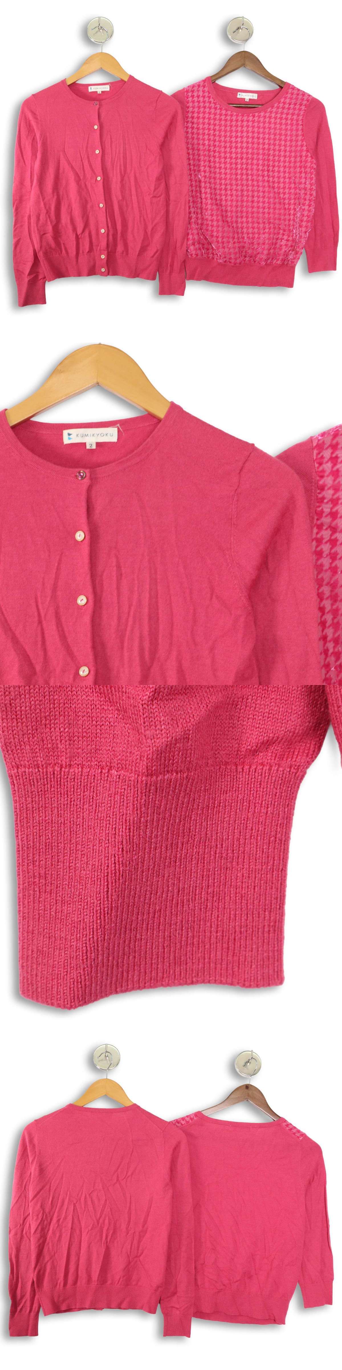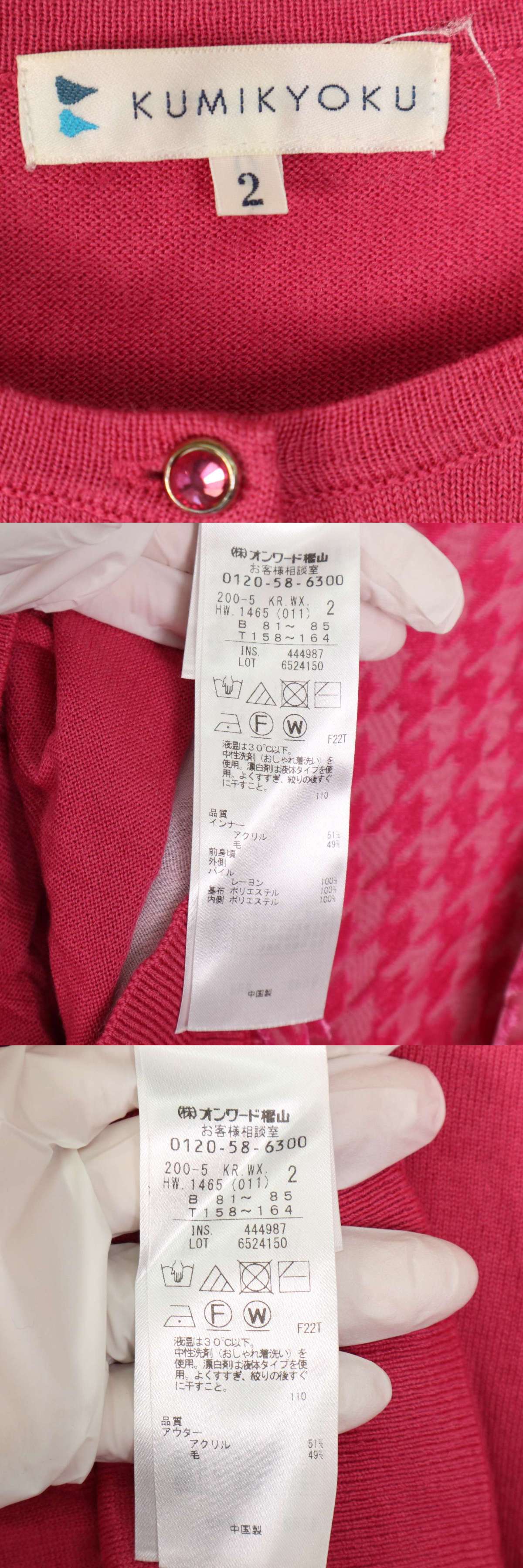 KUMIKYOKU クミキョク 秋冬 ウール混★ 千鳥柄 ニット アンサンブル カーディガン Sz.2 レディース ピンク 收藏
