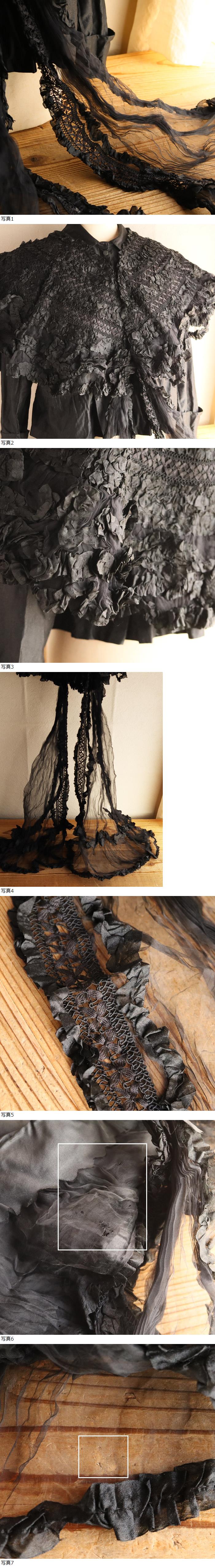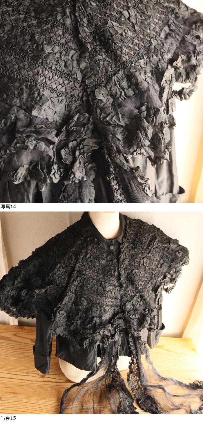 【92】フランス アンティーク 19世紀末〜20世紀初頭 黒 ケープ & シャツ セット ヴィクトリアン エドワーディアン モーニングウェア 收藏