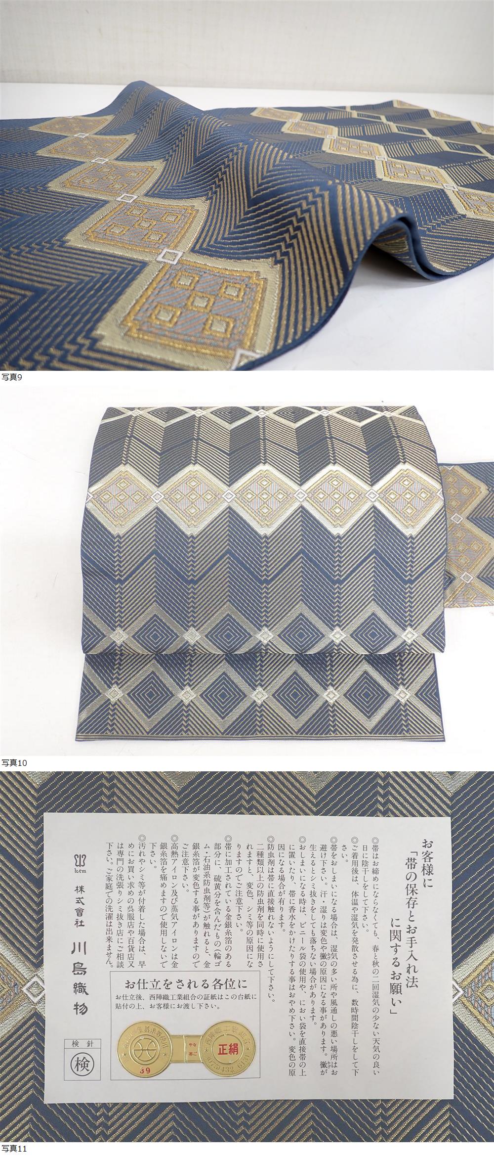 逸品 名門 川島織物謹製 正絹 二部式帯 金糸 幾何学 菱文 西陣織 簡単結ばない帯 | ||||