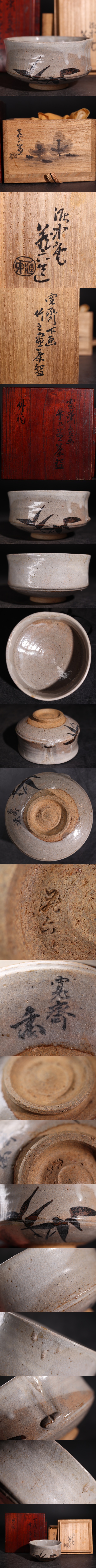 | 真清水蔵六 作 森寛斎 下画 竹之画 茶碗 二重箱 / 鉄絵 茶器 煎茶道具 煎茶飾 .G3718 |