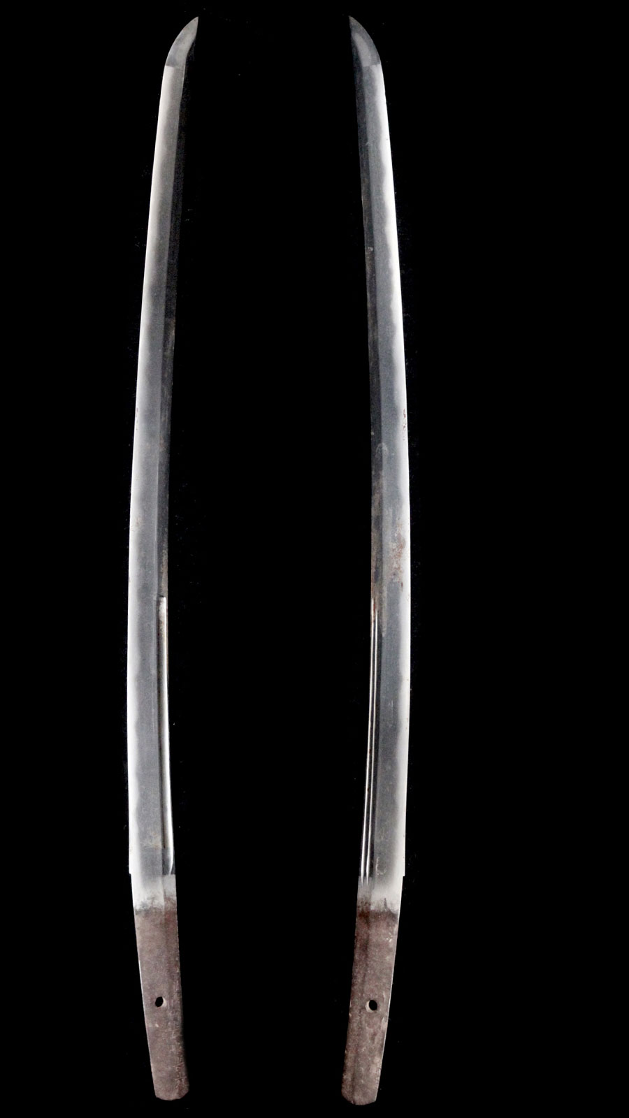 刀身長:約48.4cm 反り:約1.1cm 目くぎ穴:1個 元幅:約28mm 元重:約5.4mm 先幅:約17.6mm 先重:約3.5mm 刀身重:約346g 棟:庵棟 ハバキ: |