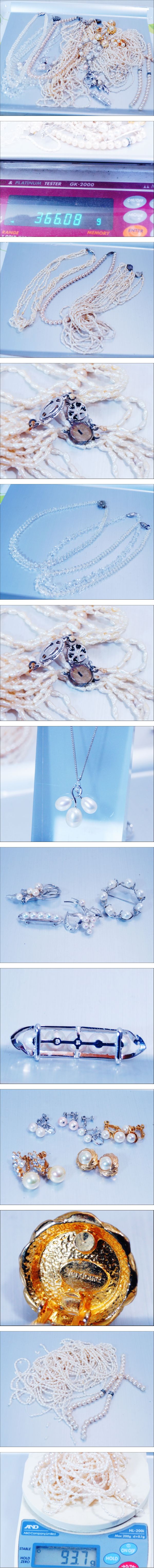| パール等 アクセサリーまとめ売り☆重さ:366.08g☆ネックレス4本+3本・ブレスレッド1本・5組・ブローチ3個・帯どめ1個 ★淡水パール(SILVER・925刻印)2本 ★パール?ネックレス1本 ★パール?トップネックレス1本 チェーン長さ:40cm トップ 縦3cm×横2.5cm ★淡水パールブレスレッド(SILVER刻印) ★クオーツネックレス3本(内2本留めにSILVER刻印) ★イヤリング:6組(ゴールドカラー1組Vendome 刻印) ★ブローチ3個 ★帯どめ1個(ミキモト M S 刻印) ★バラ93.7g 状態:中古品 | ||