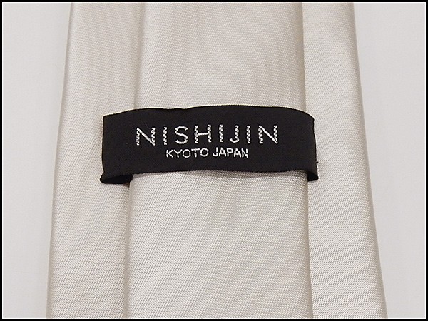 西陣織 ネクタイ チーフ付 シルバー 無地 朱子織 シルク100% 日本製 ソリッドタイ メール便可