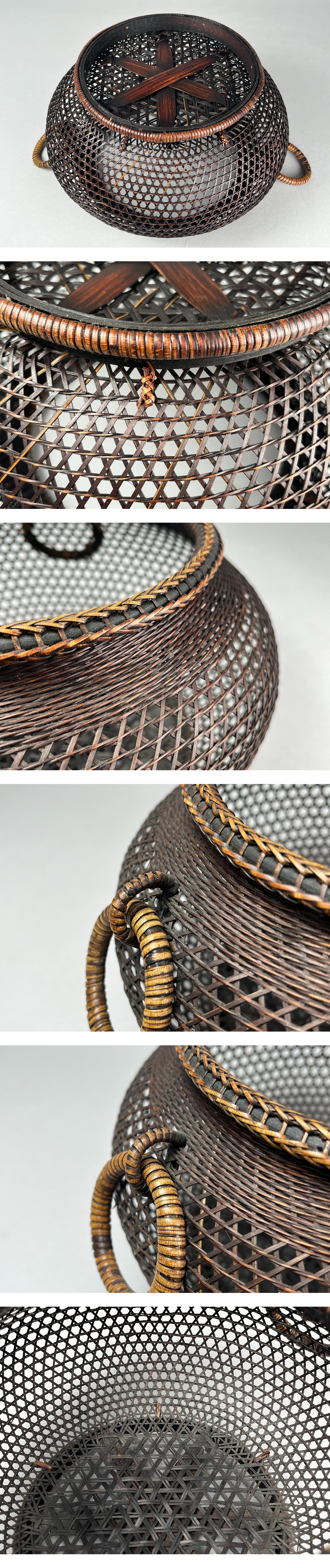 B03 竹編 細工 丸耳花器◇古道具/竹細工/収納/花籠/収納籠/民藝/和雑貨/アンティーク/レトロ/インテリア 收藏