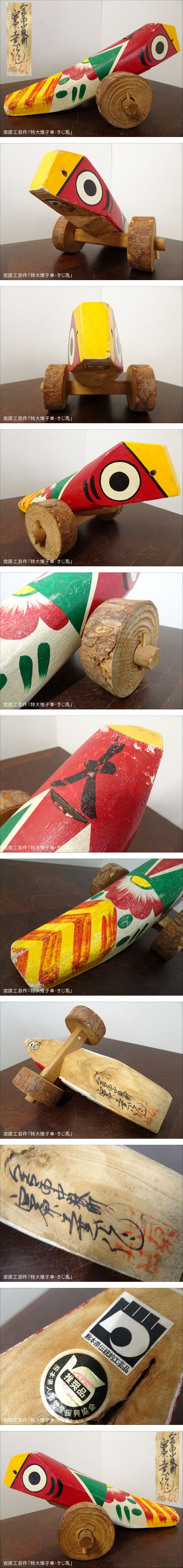 郷土玩具 民芸品 熊本県人吉市 宮原工芸作「特大雉子車・きじ馬」木彫 置物/九州伝統工芸/時代物 | ||||||||||||||||||