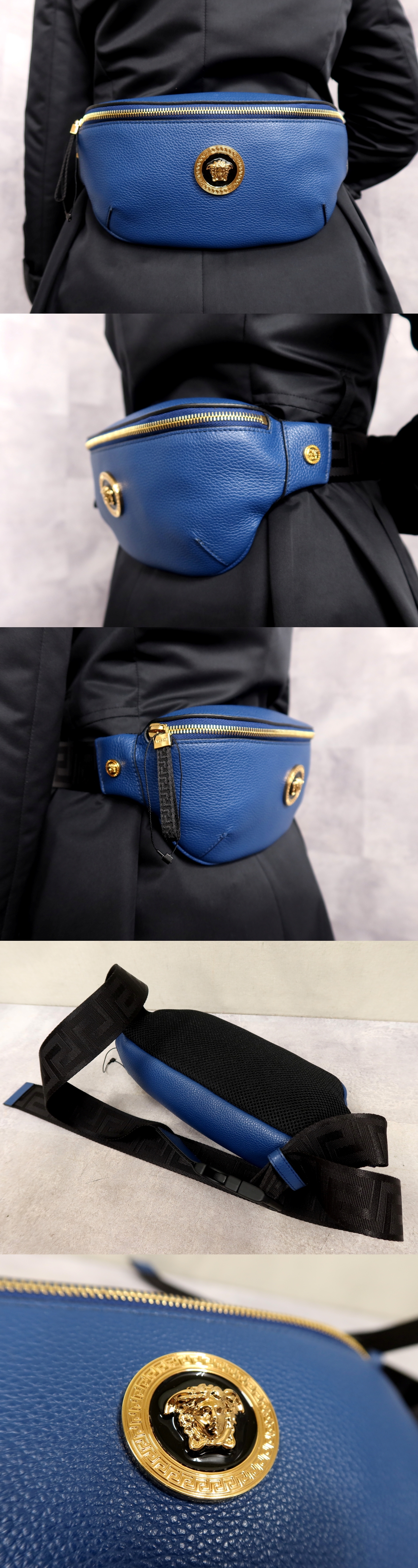 ●未使用●VERSACE ヴェルサーチ●メンズ●メデューサ●カーフ レザー 本革●ボディ バッグ ウエスト ポーチ●ブルー●G金具●Js65605 收藏