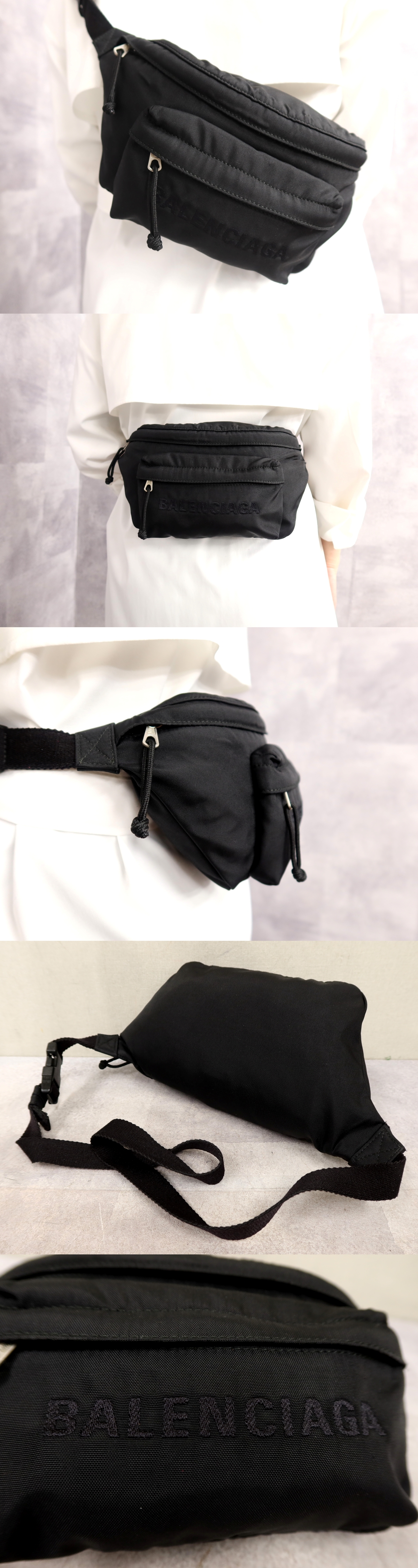 ●超美品●BALENCIAGA バレンシアガ●ウィール ベルトパック●ナイロン●ウエスト ボディ バッグ●黒●シルバー金具●斜め掛け●Js67047 收藏