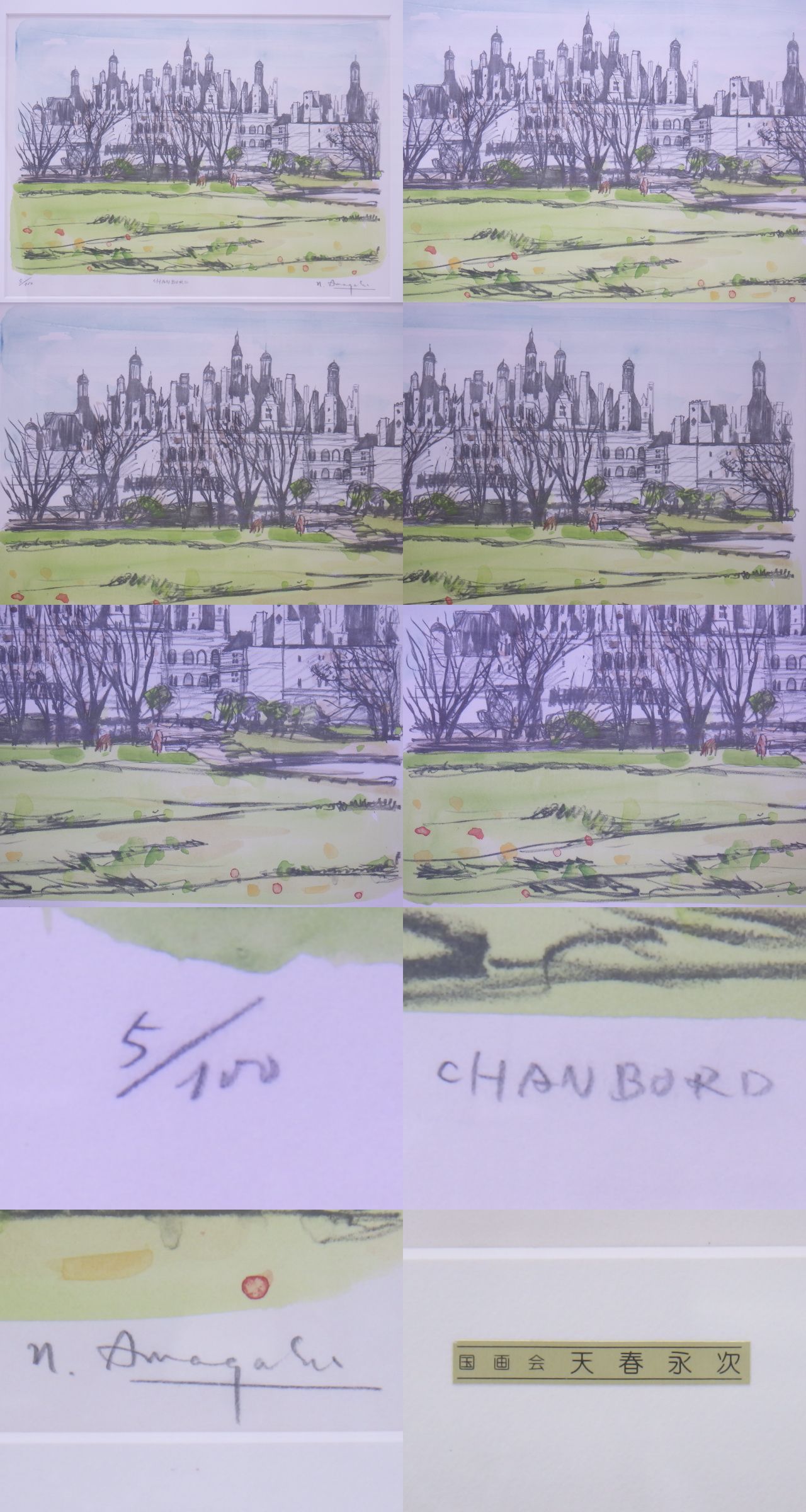 h5A020Z- 国画会 天春永次 シャトー ウ゛ィランドリー・ロアール/シャトー シャンボール リトグラフ+手彩色 直筆サイン 2点セット 收藏