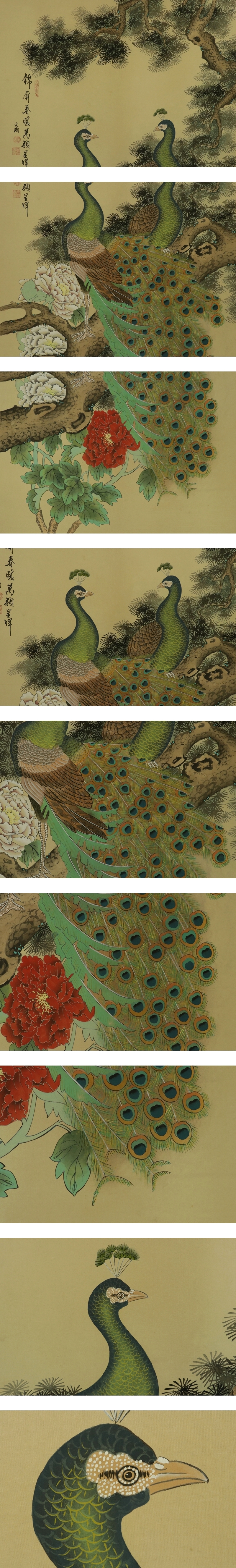 | №2303036【肉筆】中国画・在銘【孔雀図】◆絹本◆掛軸 | |